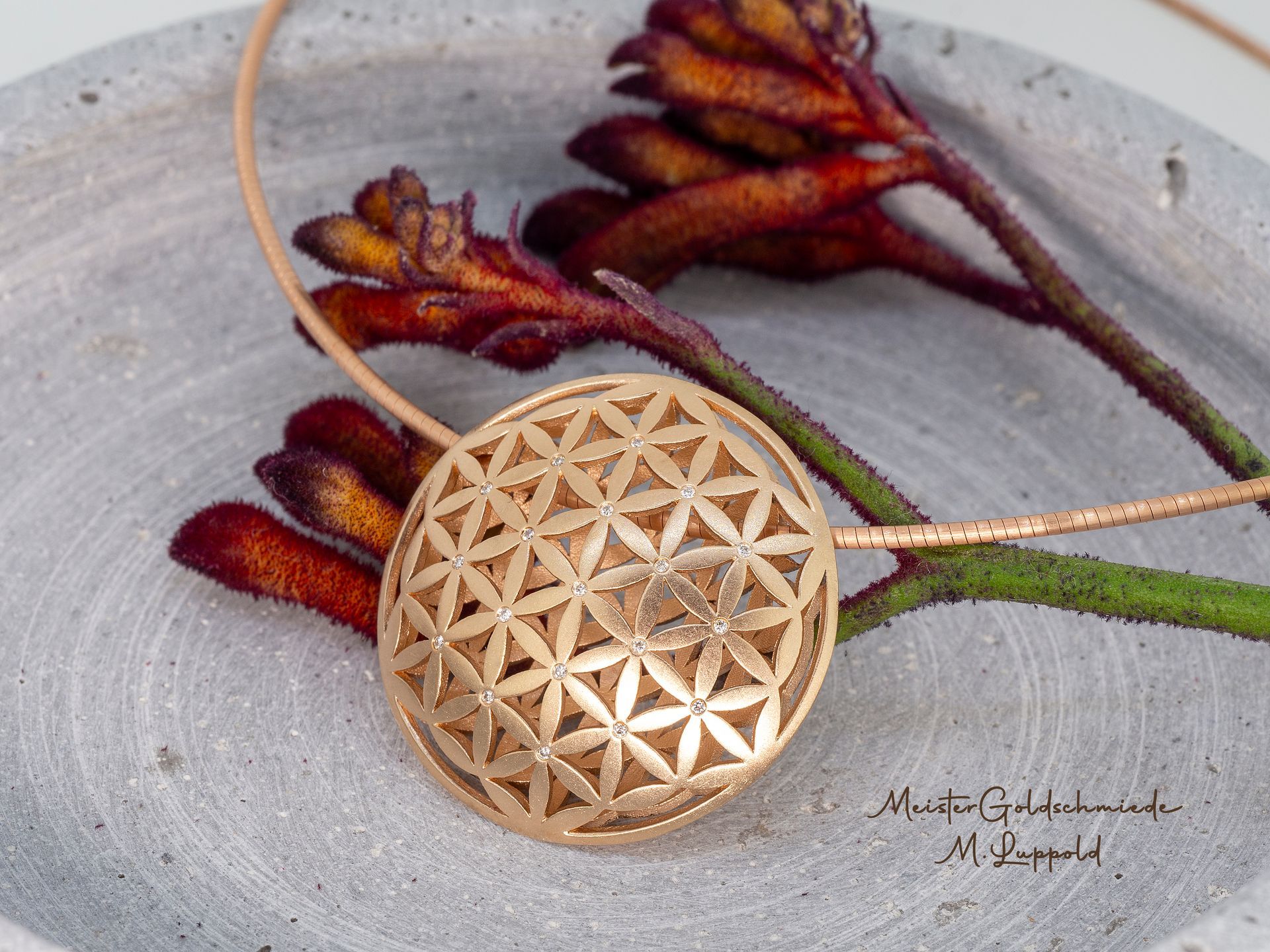 750/- Rotgold mit 19 Brillanten 0,12 ct G-VVS 2.490 Euro I Omegareif 750/- Rotgold 42 cm mit Clipschließe 1.390 Euro