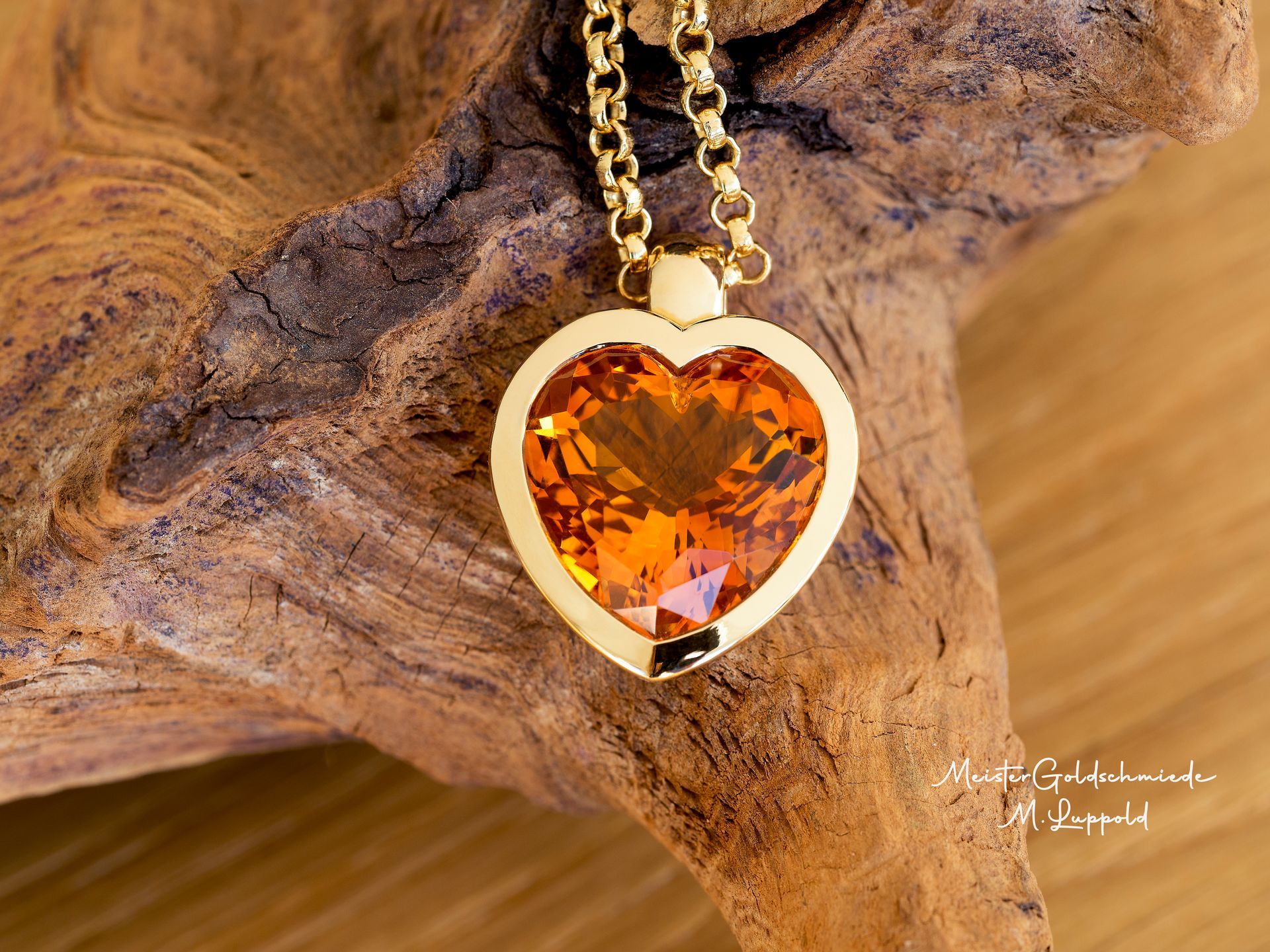 750/- Gelbgold Madeira-Citrin Herz 4,05 ct Anhänger Preis auf Anfrage I Erbskette 750/- Gelbgold 42 cm